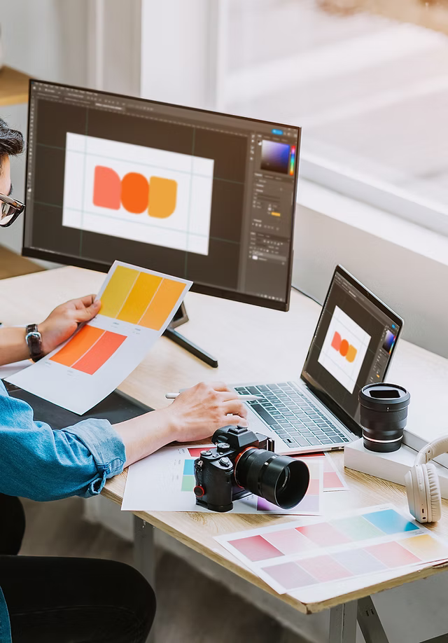 Our graphic design services combine aesthetics with strategy, producing visuals that reflect your brand’s identity and connect with your audience. Whether you need compelling logos, eye-catching banners, or striking digital assets, we help elevate your visual identity to new heights.